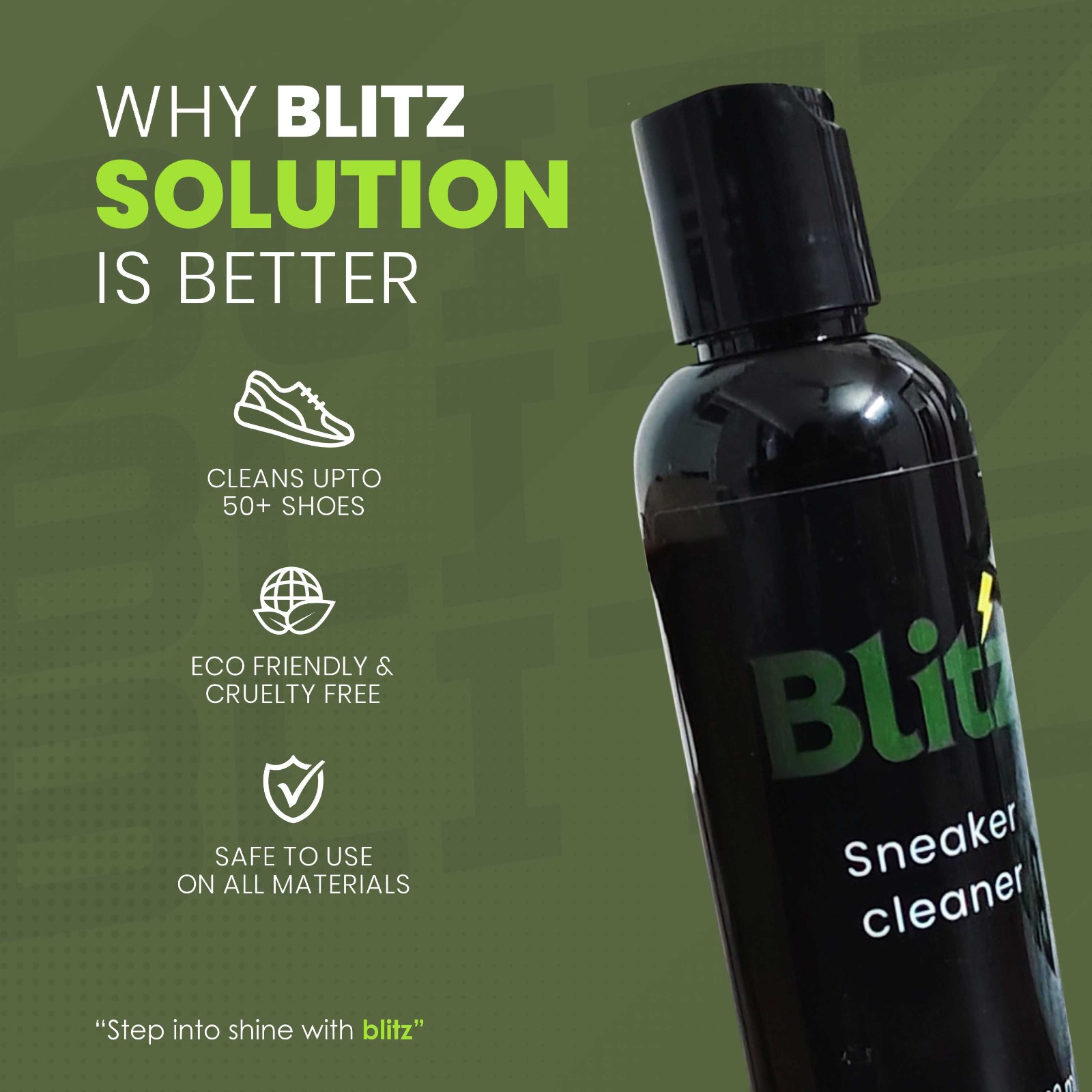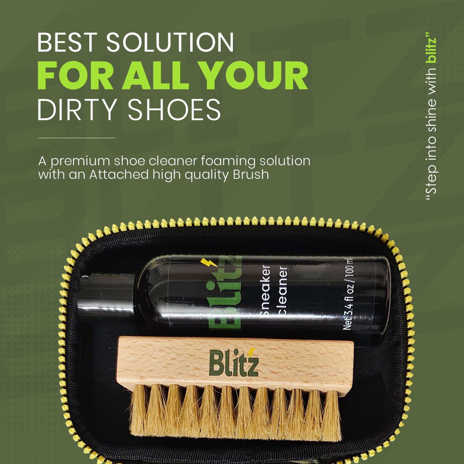 At Blitz, we believe that every pair of sneakers has a story to tell, reflecting the journeys and experiences of their owners. Our passion for footwear care drives us to create the ultimate cleaning solutions, ensuring your favorite kicks stay fresh, vibrant, and ready for any adventure. We understand that sneakers are more than just shoes; they’re a form of self-expression that showcases your unique style. That’s why we use eco-friendly ingredients and innovative formulas, dedicated to preserving the look and feel of your footwear.
